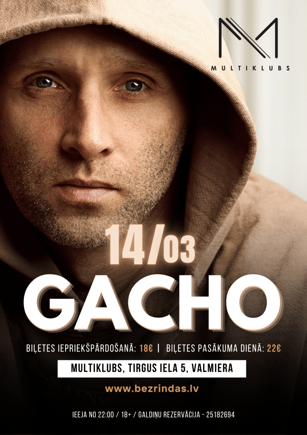 14.martā Multiklubs pārvērtīsies par īstu enerģijas epicentru, uz skatuves kāps viens no jaudīgākajiem Latvijas hiphopa māksliniekiem GACHO! Sagaidāms eksplozīvs šovs ar spēcīgu skanējumu, labi zināmiem hitiem un atmosfēru, kas neatstās vienaldzīgu nevienu.