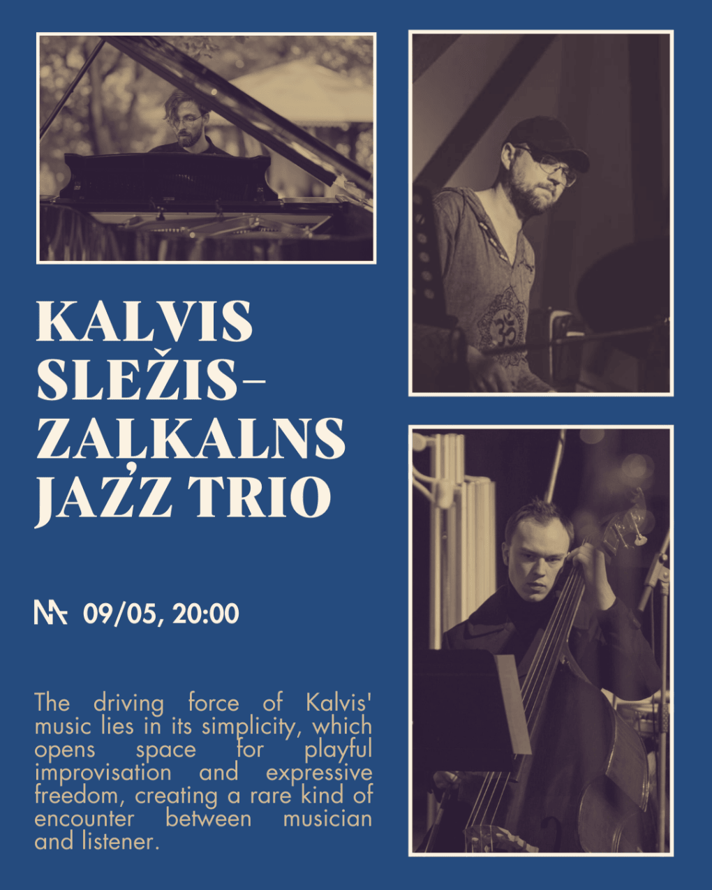 On May 9, MASA presents the Kalvis Sležis-Zaļkalns Jazz Trio. The program features vibrant original compositions, written during different phases of searching — and not searching — for clarity in life.