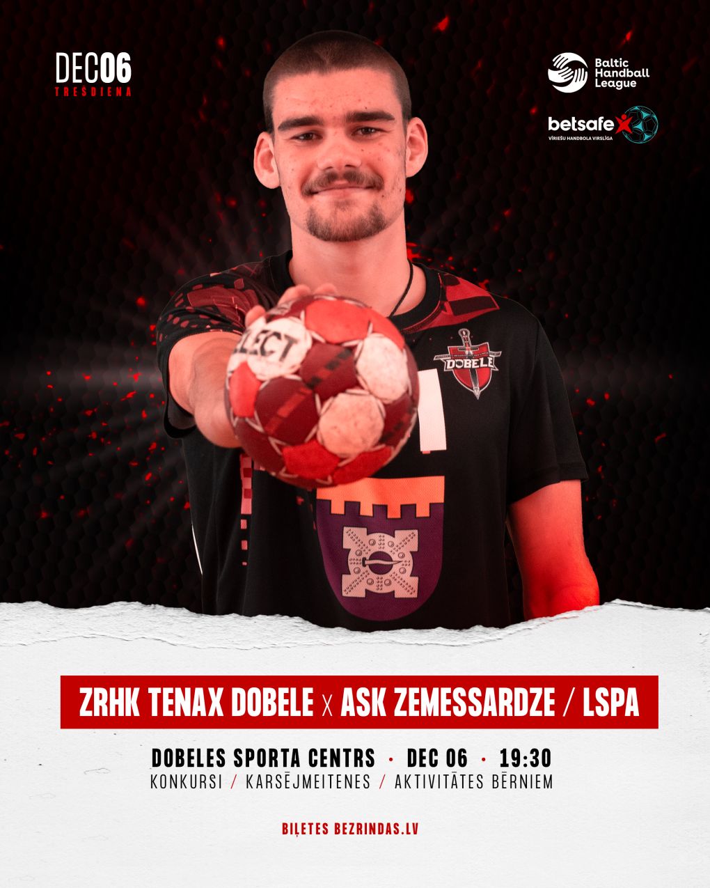 ZRHK “TENAX Dobele” savā laukumā uzņems komandu no Rīgas - ASK Zemessardze / LSPA, lai cīnītos par uzvaru Baltijas handbola līgā un arī Betsafe handbola virslīgā.
