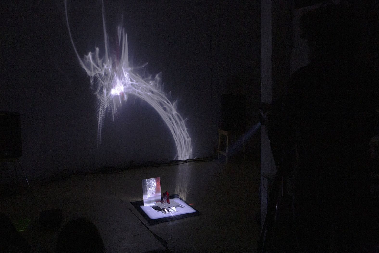 Uzlieciet dimanta uzgalīti uz plates un ieklausieties raksturīgajā kartonam līdzīgajā skaņā, iedomājoties, ka tā stiepjas bezgalīgi. Ļaujiet gaismas staram pieskarties kristāla priekšmetam un vērojiet, kā kaustika aizviļņo telpā. Izmantojot pilnībā akustiskus un analogus instrumentus, tiek pētīti vienkārši priekšmeti, atklājot slēptās optiskās un skaņas īpašības, kas to parastajā pielietojumā citādi nav dzirdamas vai redzamas.