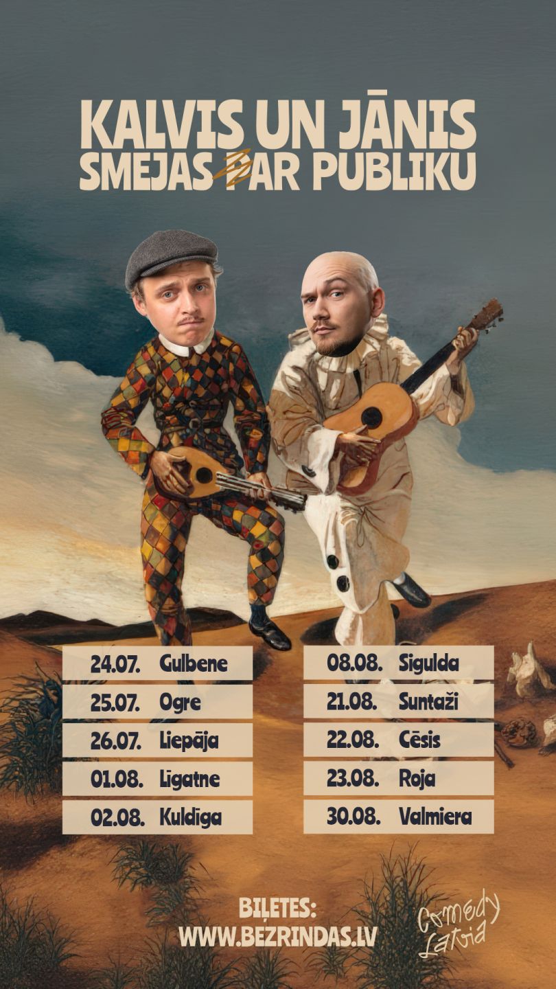 Šajā vasarā ir pienācis laiks stāstīt jokus, kas rodas runājot ar jums - publiku. Comedy Latvia komiķi Komiķi Kalvis Troska un Jānis Kreičmanis apbraukās saulainus vasarus lokālus 10 Latvijas pilsētās, lai sniegtu jums humora pilnu vakaru "crowdwork" formātā.