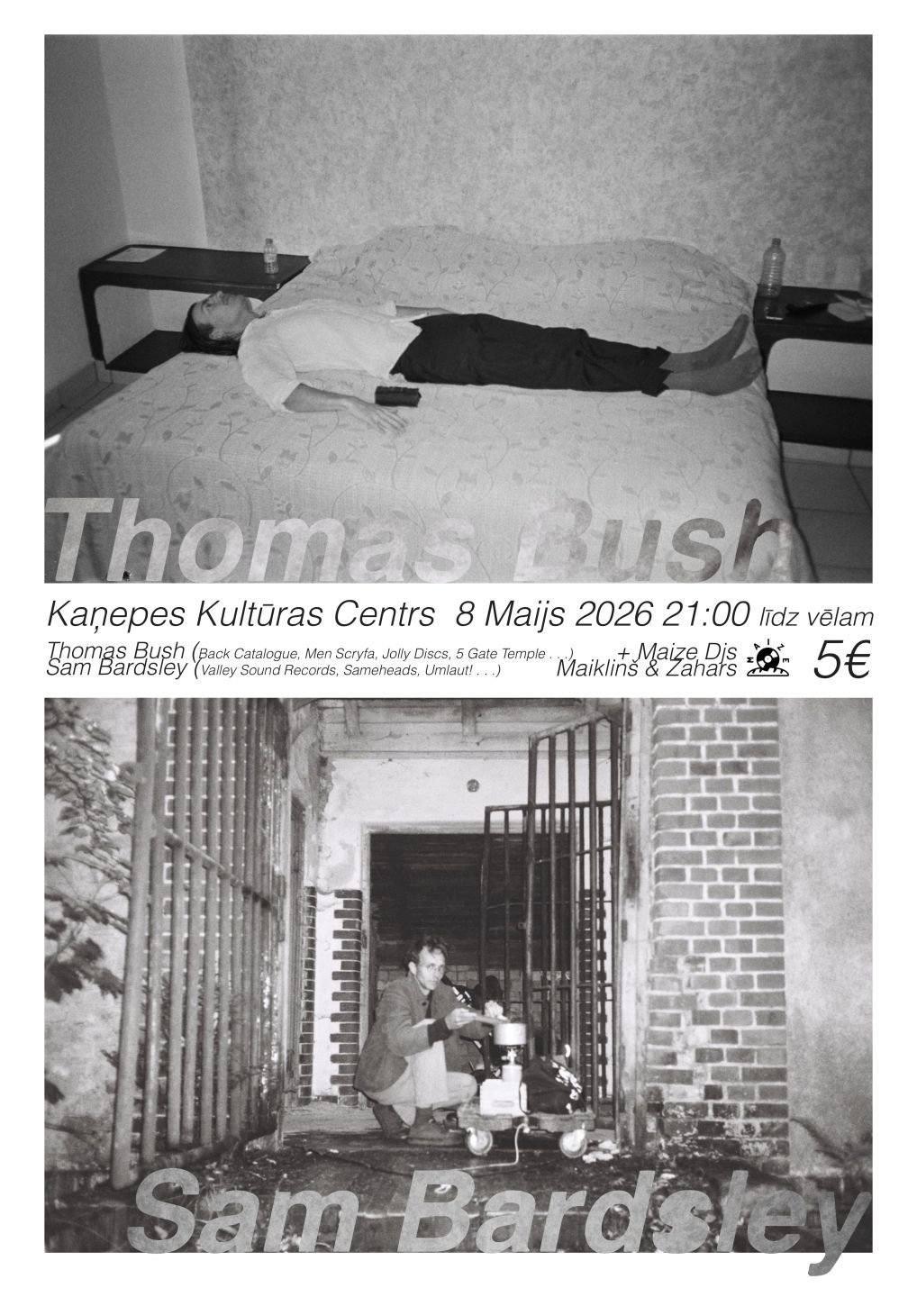 Thomas Bush and Sam Bardsley will come to Riga to play some of their songs in an intimate setting at Kanepes. As part of a series of international events we invite Thomas Bush who has previous releases that touch on dubwise sound design and folk roots on John T Gast’s label 5GT as well as the awesome Men Scryfa imprint ! We are truly lucky to be able to have him here in Riga to share some new music . For up to date audio recordings please check out his most recent album The Next 60 Years on the underground Jolly Discs label!