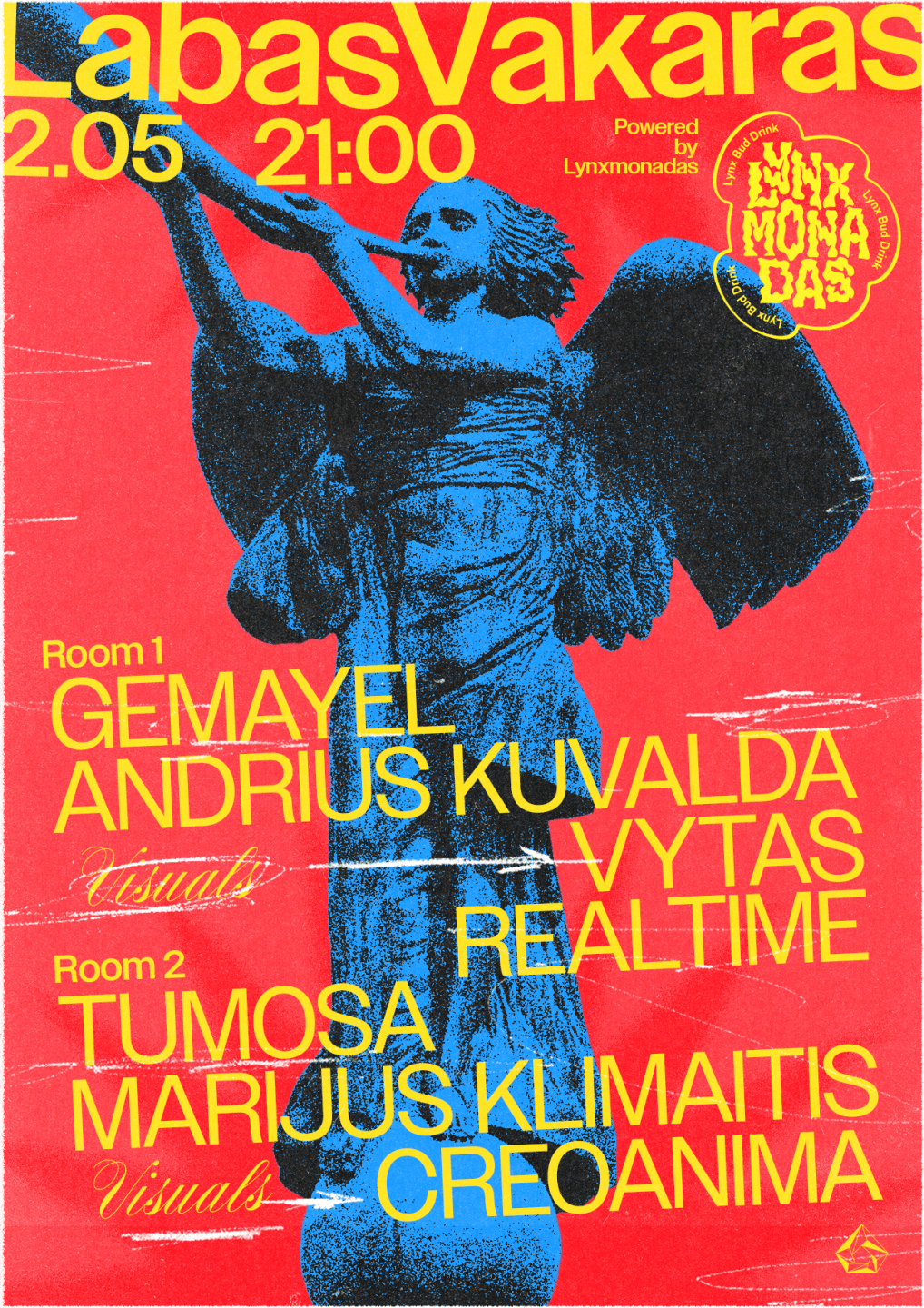 Labas Vakaras, or good evening, and it’s going to be a long one. Two floors of Kanapes Cultural Center will transform into a dynamic space of pulsing rhythms and evolving visuals. Coming from Vilnius, this carefully curated lineup brings a distinct sonic and visual journey to Riga.