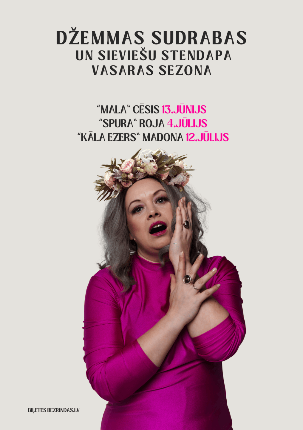 Informējam, ka pasākuma laikā var notikt fotografēšana un filmēšana, un iegūtie attēli un video var tikt ievietoti Džemmas Sudrabas un Sieviešu stendapa sociālajos tīklos un mājas lapā dzemmasudraba.lv.