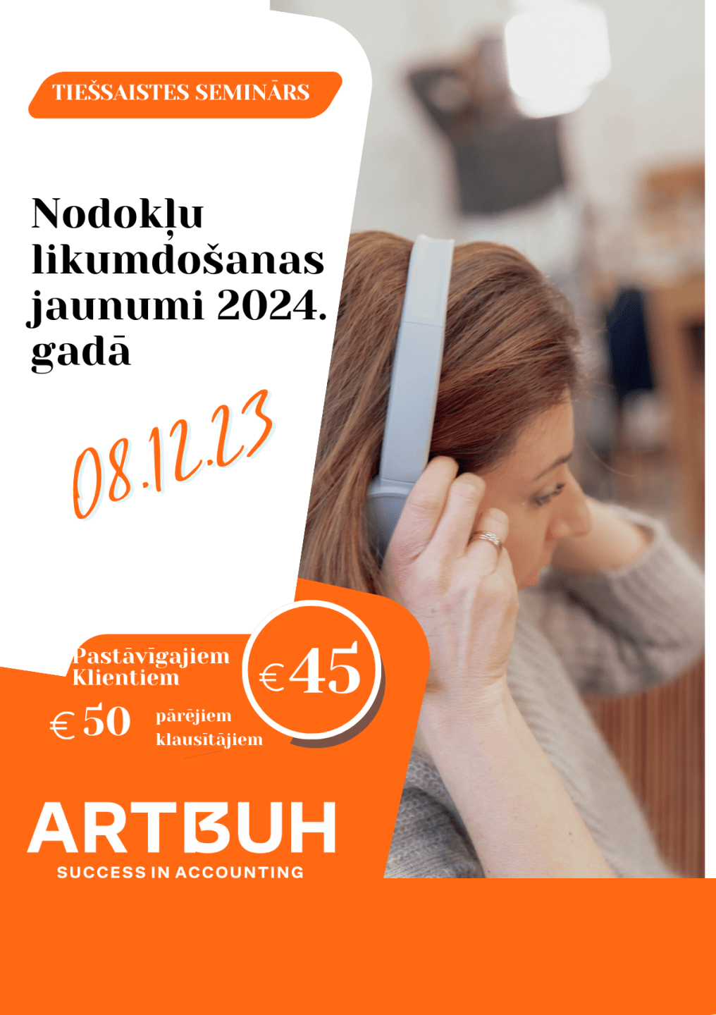 Pasākuma "Tiešsaistes seminārs:Nodokļu likumdošanas jaunumi 2024. gadā" organizators: ARTBUH SIA