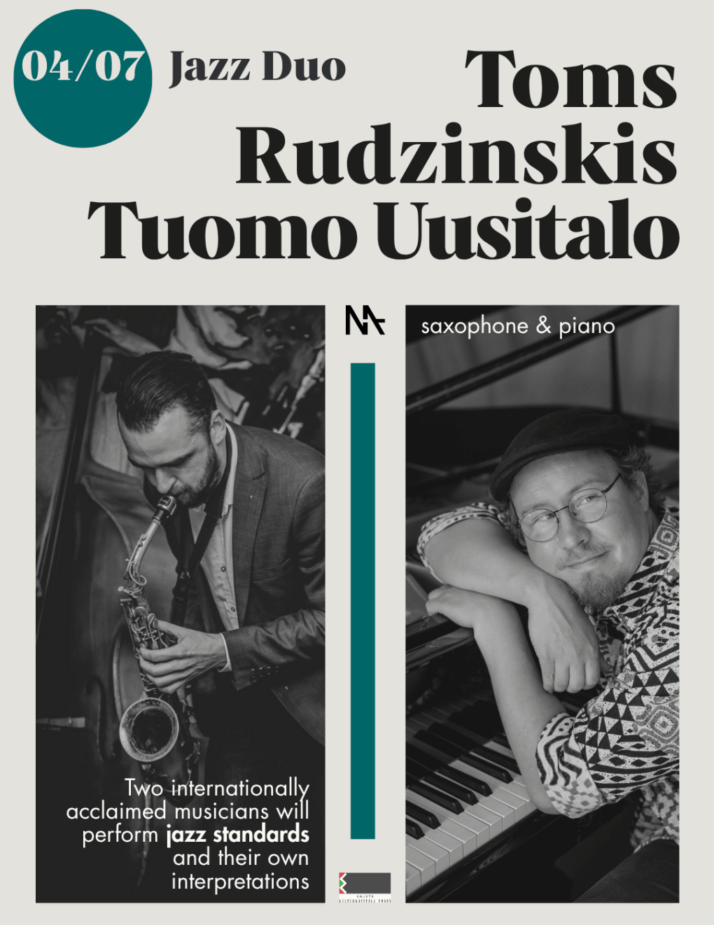 Piektdienas vakarā, 4. jūlijā, uz MASA skatuves uzstāsies divi starptautiski atzīti džeza mākslinieki ar koncertprogrammu, kurā skanēs džeza standarti un viņu individuālās interpretācijas.