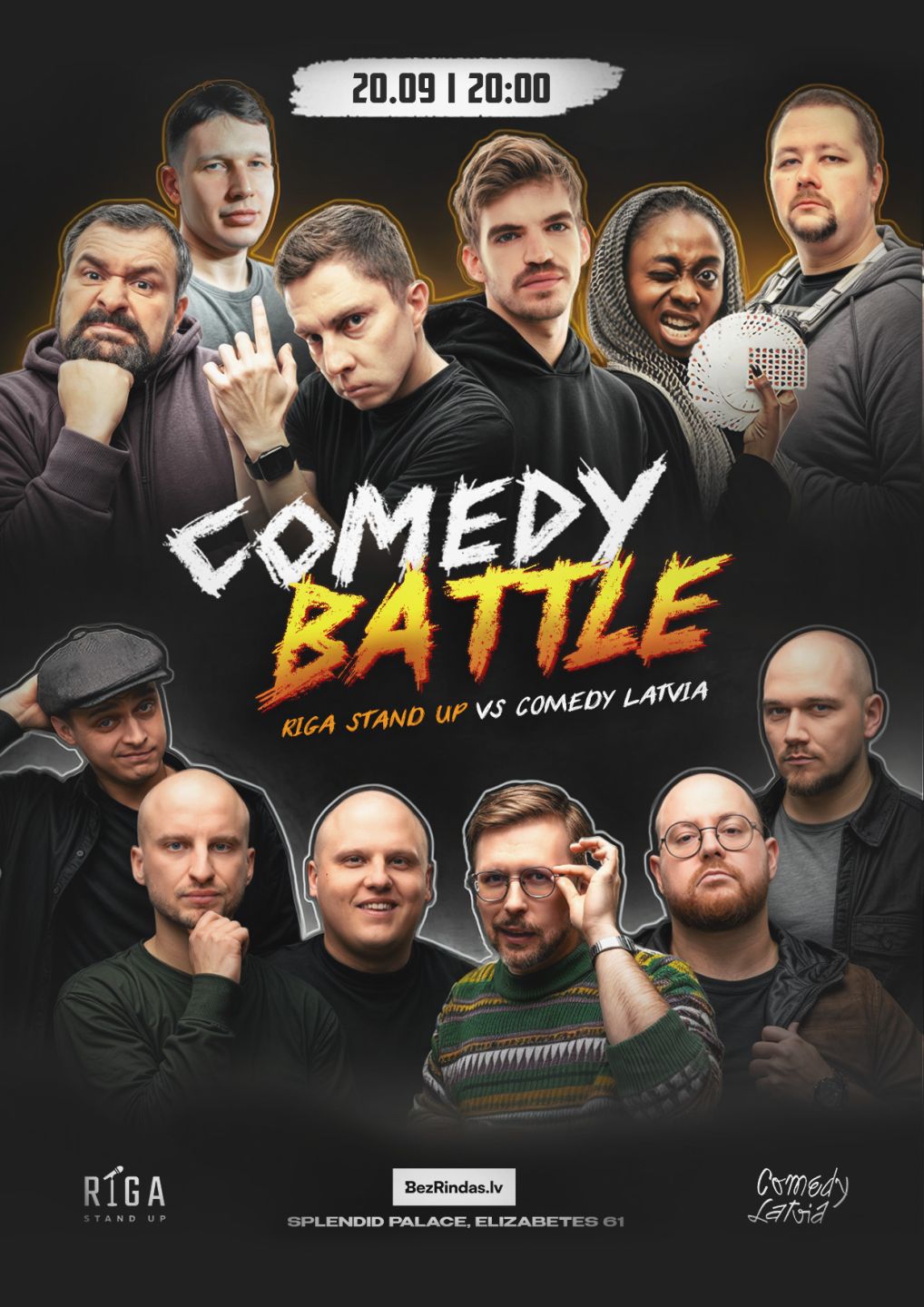Battlā piedalīsies 6 komiķi no Comedy Latvia: Jānis Kreičmanis, Kalvis Troska, Aleksandrs Guzenko, Kaspars Žilins, Kārlis Strautiņš un Edgars Staškevičs, un 6 komiķi no Riga Stand Up: Aleksandrs Margolins, Valters Graviņš, Deniss Ivanovs, Antons Gerasimovs, Igors Žemčugovs un Lydia.