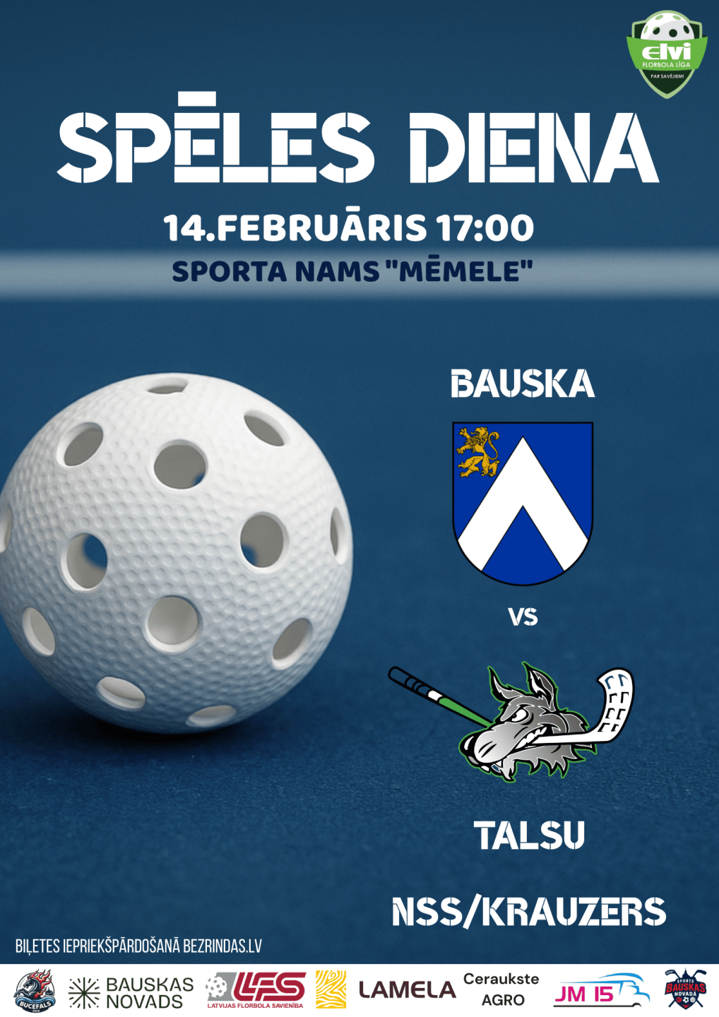 Biļešu cena uz Elvi vīriešu florbola līgas komandas “Bauska” mājas spēli: 4.00 € + komisijas maksa.