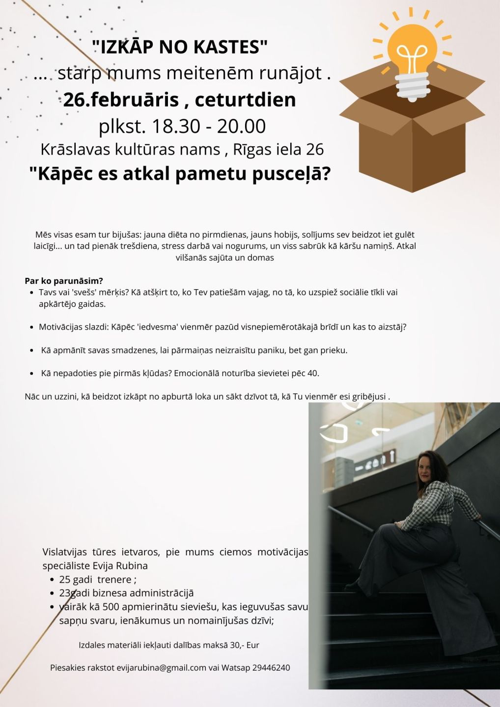 Организатор мероприятия "Izkāp no kastes ": Evija Rubina