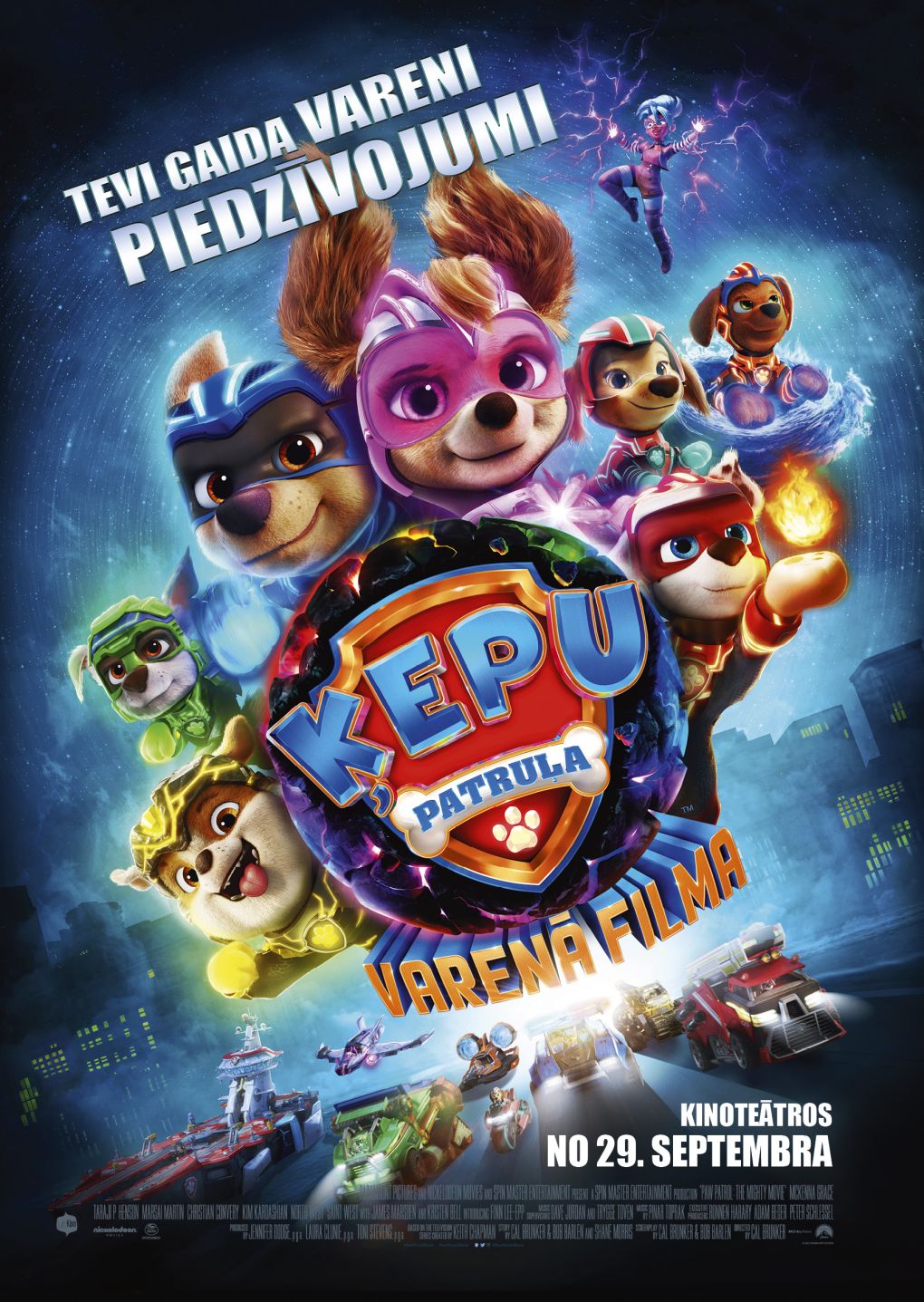 Kad Piedzīvojumu pilsētā nokrīt noslēpumains meteorīts, tas Ķepu patruļas kucēniem piešķir superspējas, pārvēršot tos par Varenajiem Kucēniem! Skajai, mazākajai komandas dalībniecei, viņas jaunās spējas ir sapņa piepildījums. Taču, kad komandas pretinieks Humdingers izkļūst no cietuma un kopā ar zinātnieku plāno nozagt šīs superspējas, Varenajiem Kucēniem būs jāaptur supernelieši, kamēr nav par vēlu. Un Skaja uzzinās, ka pat mazākais kucēns var paveikt lielus varoņdarbus!