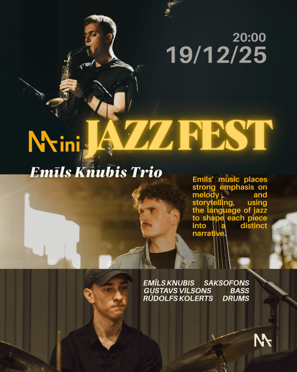 19 декабря в рамках MASA Mini Jazz Fest выступит трио Эмила Кнубиса, представив программу из собственных композиций и аранжировок. В музыке Эмила важную роль играет джазовая выразительность, мелодия и история, которую он рассказывает, каждая из них имеет свой характер и внутренний сюжет.