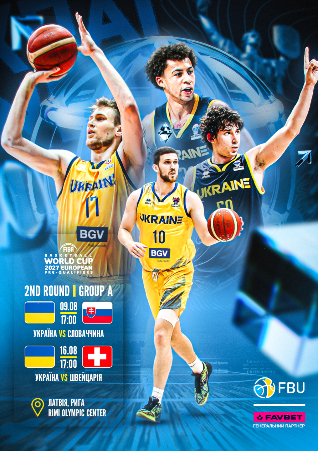 Чоловіча збірна України з баскетболу розпочинає свій шлях до чемпіонату Світу 2027. Стартові матчі у першій кваліфікації наші хлопці зіграють 9-то та 16-го серпня у Ризі. Суперниками команди Айнарса Багатскіса стануть збірні Словаччини та Швейцарії. У суботу 9-го серпня в Rimi Olympic Center Україна зіграє проти Словаччини, а 16-го серпня – прийматиме Швейцарію.