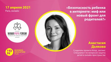 Тема лекции Анастасии Дьяковой «Безопасность ребенка в интернете: миф или новый фронт для родителей?» Продолжительность -- 2 часа.